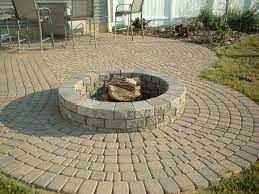 Brick paver patio ideas with fire pit.